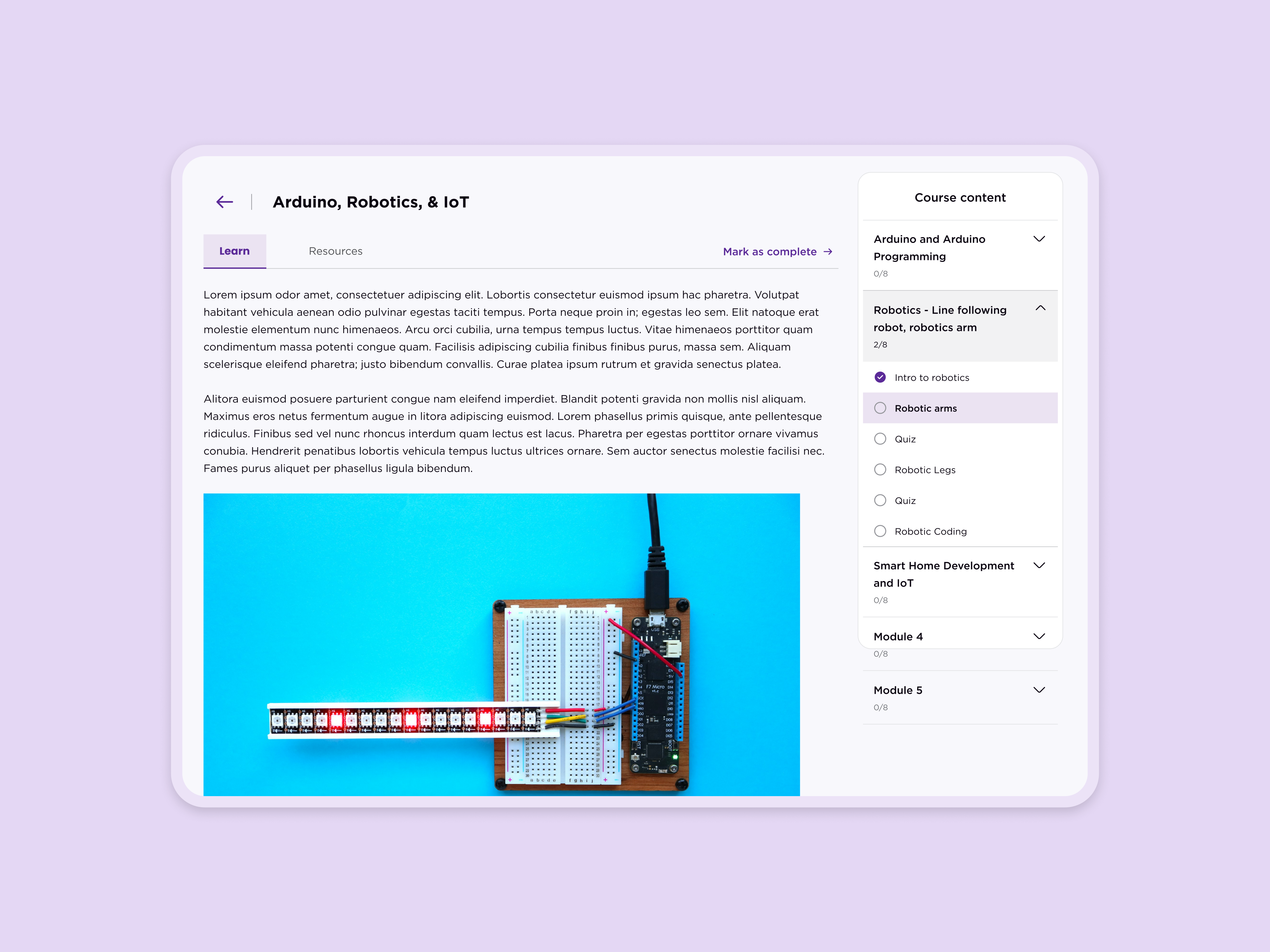 From there, I moved into UI design, focusing on the learning dashboard for IoT School — Buni’s primary platform for interactive learning. I’m currently leading its design, ensuring the interface remains intuitive, engaging, and fully aligned with the brand’s mission.